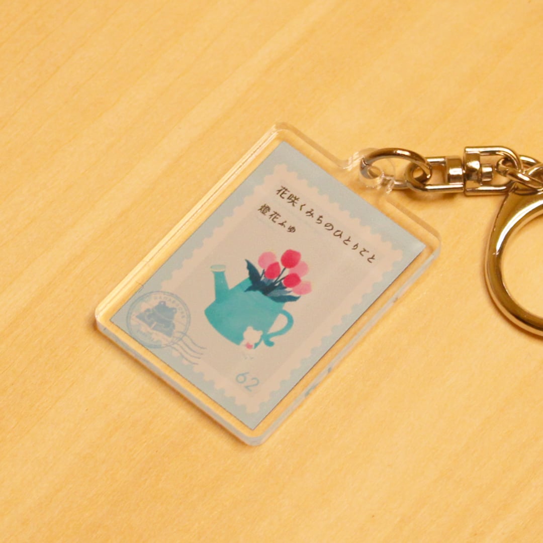 当店の書店員・燈花ふゆ初の短歌集『花咲くみちのひとりごと』の装丁デザインを使ったアクリルキーホルダーです。