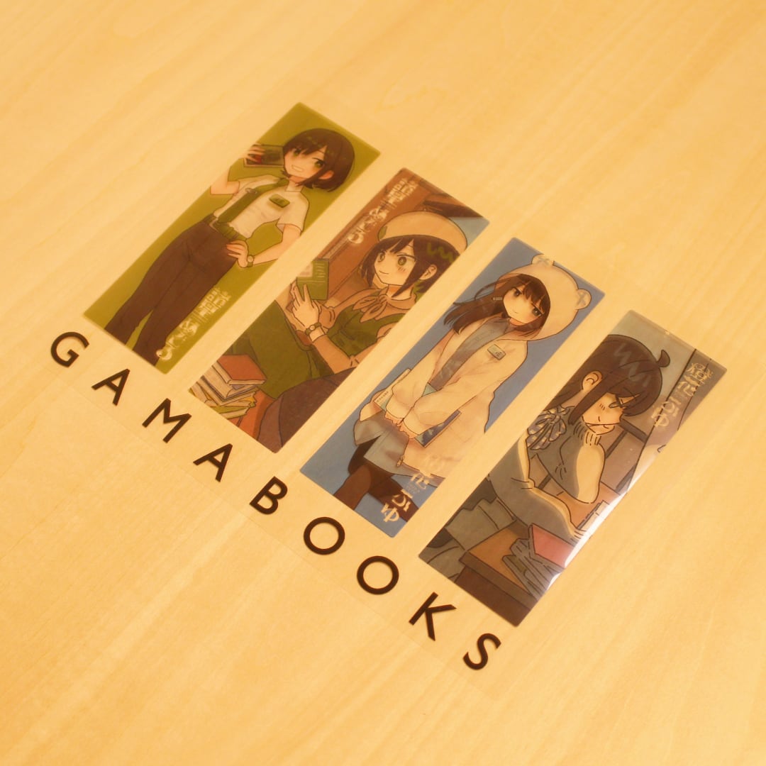 当店の書店員・諸星めぐる(もろぼしめぐる)&燈花ふゆ(とうかふゆ)のオリジナルクリアしおり×4枚セットです。